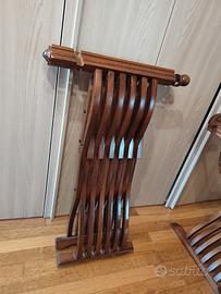 •Struttura: Forma a “X” con elementi curvati e listelli multipli, braccioli torniti con terminali sferici