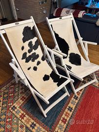 Pezzi unici, vintage, 2 sedie sdraio completamente ristrutturate, in legno massiccio e pelle di cavallino. Una chicca per casa.