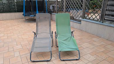 2 sedie sdraio o lettini richiudibili la grigia perfetta, la verde invece da riparare la seduta