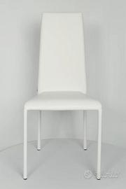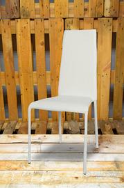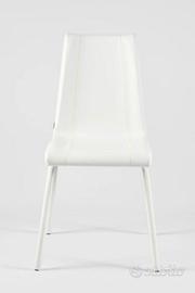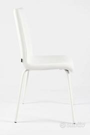 Sedie di seconda scelta rivestite in finta pelle o tessuto con gambe verniciate in legno di faggio, disponibili in diverse varianti di colore. Trattandosi di pezzi unici le disponibilità possono variare nel tempo.