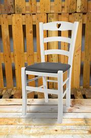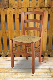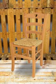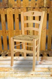 Sedie di seconda scelta con robusta struttura in legno di faggio e seduta in paglia o imbottita disponibili in diverse varianti di colore.