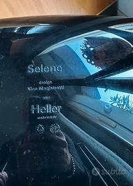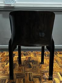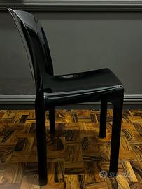 Set di 4 sedie Selene in plastica colore nero. Struttura a monoscocca. Impilabili. Vintage. Brand Artemide; anno di produziome 1960; designer Vico Magistretti. Condizioni buone, presentano piccoli graffi circolari sulle sedute (swirls) di normale usura e una sedia ha due alette sotto la seduta rotte anche se nok si nota (già scontata nel prezzo offerto). Misure: 48x50 cm h. 76 cm