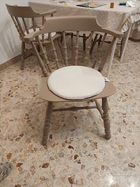vendo 4 sedie ristrutturate stile shabby chic colore nocciola , qualche segno di usura che si può benissimo riprendere essendo di legno.