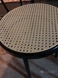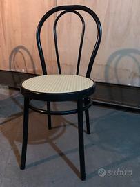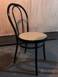 Sedie thonet tipo “bar” in ferro verniciato nero e seduta vienna finta paglia. €20 cad oppure €15 cad se acquistate in quantita’ minima di 6 pezzi.