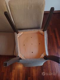 Vendo 4 sedie da soggiorno in buono stato. Completamente sfoderabili per igienizzazione. Struttura resistente e gambe color testa di moro. Rivestimento di un elegante e abbinabile color tortora.