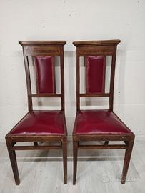 Belle sedie liberty degli anni 20-30 imbottite sia sulla seduta che sullo schienale. Presentano i segni del tempo ma molto robuste e perfettamente utilizzabili. Accetto offerte da interessati e fornisco ulteriori info e foto. Non spedisco,
