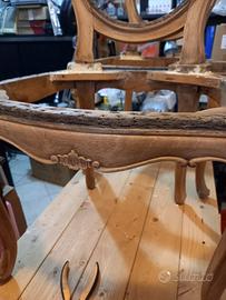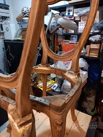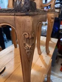 Le 2 sedie in oggetto viste da uno esperto sono originali. Ho tolto il vecchio rivestimento e riportate a legno, e sono state consolidate. Sono in noce.