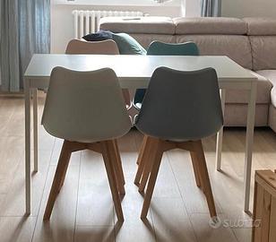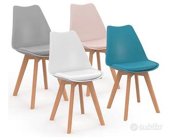 Vendo causa cambio casa e cambio arredamento 4 sedie da pranzo stile scandinavo in 4 colori: rosa pastello, bianco, grigio chiaro e blu.