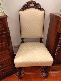 Vendo sei seggiole antiche in perfette condizioni con rivestimenti senza imperfezioni.