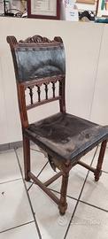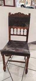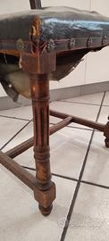 Molle e cinghie delle sedute sono da ristrutturare, il cuoio antico potrebbe essere mantenuto, come anche le fasce decorative. Il legno è tutto buono, si devono riprendere solo gli incollaggi inferiori.