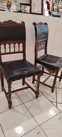 Due sedie in Oak francese e cuoio liscio (da pranzo e/o studio) stile Enrico II del 1850.