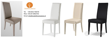 - N. 04 Sedie In Legno Con Gambe dello stesso colore del rivestimento con Seduta e Schienale in ecopelle Colorato (Colori ecopelle: Bianco - Beige - Tortora - Nero).