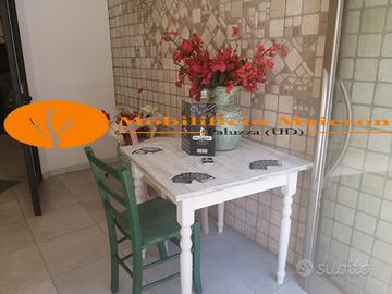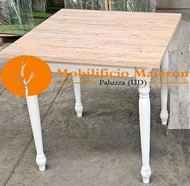 N. 01 Tavolo Con 4 Gambe Tornite In Legno Massello Di Faggio In Colore Bianco Anilina Con Piano Tavolo In Melaminico Rovere Antico 80x80x2.5 ( Disponibili Anche Altre Dimensioni come 60x60 - 70x70 - 80x80 - 90x90 e Rettangolari ) . Si Tratta Di TAvoli Nuovi non Usati, Ideali Per Arredamenti Di Locali In Stile Moderno - Contemporaneo - Industrial - Shabby Chic - Vintage - Rustico e Classico. Sono Tavoli Robusti, Di ottima Qualità ed Ideali Per un uso interno ed Esterno se Coperto da Dehor.