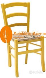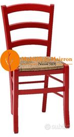 N. 04 Sedie in legno massello di Faggio Colori Anilina a Scelta fra bianco - rosso - giallo - verde - blu con seduta paglia. Si tratta di sedie nuove non Usate, Ideali per Arredamenti di Locali in Stile Moderno - Rustico - Colorato - Shabby ed Industrial. Sono Sedie che Possono essere Utilizzate Per Arredamenti interni ed Esterni di Giardini e Terrazze se Coperto da Dehor.