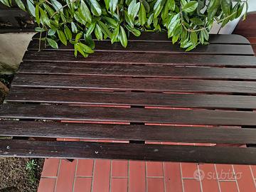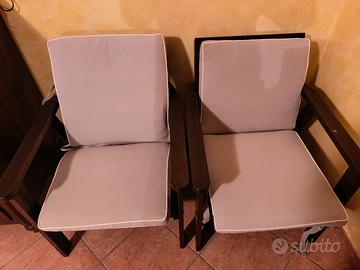 due sedie con cuscino + tavolo 120x 68 cm da riverniciare , tavolo con una gamba danneggiata ma stabile Non sono pieghevoli e non è possibile disfarli .