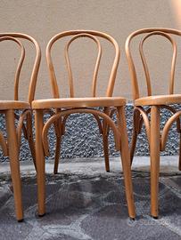 6 Sedie Thonet in Faggio Verniciato Naturale, con seduta in Paglia di Vienna di recente sostituzione.