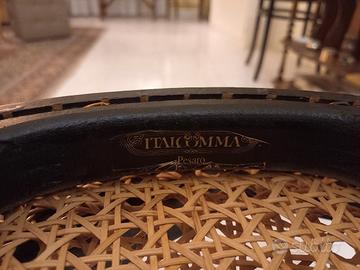 4 sedie in legno frassino nero con sedute in paglia. 2 sedie sono con piccoli cedimenti