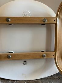 Set 4 sedie modello Mork, design moderno ed elegante, in perfette condizioni. Seduta in polipropilene bianco opaco con gambe in metallo finitura rovere, ideali per cucina, sala da pranzo o ambiente moderno. Vendo per trasloco in nuova casa. Acquistate 4 anni fa, sempre tenute con cura. Prezzo: €150 per tutte e 4. Dettagli tecnici: – dimensioni sedia: H 75 x L 52 x P 57 cm – altezza seduta: 43 cm – dimensioni seduta: L 45 x P 42 cm