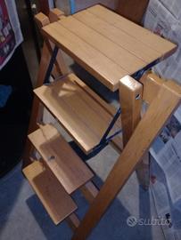 Sedia/scaletta idonea a lavori casalinghi robusta e maneggevole con quattro gradini a 10 euro, 3 sedie acciaio e plexiglass a 10 euro, il tutto a 15 euro