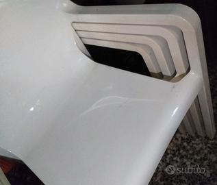 Cinque sedie Tosca Magis in policarbonato colore bianco, in discrete condizioni di conservazione, alcuni graffi e segni in particolare sui braccioli