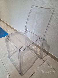 Vendo 2 sedie trasparenti in policarbonato, dal design moderno e pulito, ideali per studio professionale, sala d’attesa o casa.