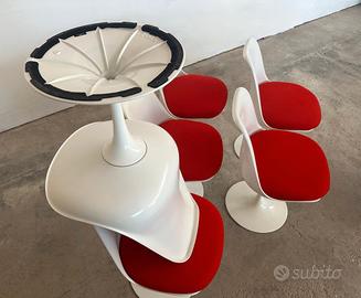Sedie Tulip Saarinen Knoll, bianche cuscino rosso