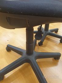 Coppia sedie per ufficio con rotelle, leva regola altezza seduta. Tessuto in colore nero