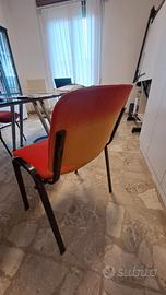 N.5 sedie per ufficio impilabili. Colore rosso Le sedie sono intatte ma presentano segni di scolorimento dal sole. Prezzo 15.00 cadauna