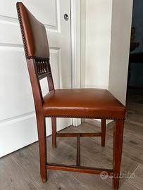 4 sedie in legno con schienale rivestito in pelle color cuoio con borchie decorative. Altezza 90 cm larghezza 45 cm NON SPEDISCO- CONSEGNA A MANO 10 € cadauna