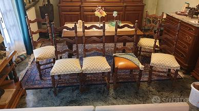 Causa cambio arredamento vendo 6 sedie In Rovere con gambe tornite, foderate In vera pelle praticamente mai usate. Assieme fornisco stoffa su misura per coprire la seduta. Sottolineo le perfette condizioni, in quanto praticamente non sono mai state utilizzate. Prezzo richiesto 180€