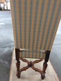 Sedie in stile Luigi XIV , perfette condizioni, foderate a nuovo in cotone a righe oro-azzurro, prezzo per il set di 4