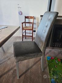 Vendo 6 sedie da pranzo seduta laccata grafite e seduta in ecopelle soft touch colore grafite vintage con dettagli bottoni sullo schienale Ecopelle su certe consumata come da foto 10 euro l una