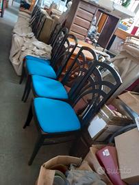 SEDIE VINTAGE VERNICIATE NERE LUCIDO E SEDIE APPENA RIFATTO IN TESSUTO TURCHESE, SPLENDIDE E ROBUSTE, IL PREZZO E' DI 6 PEZZI
