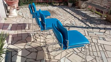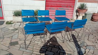 sei sedie vintage anni 70 struttura in ferro cromato seduta e schienale da poco rifatte in finta pelle, posso essere impilabili molto comode adatte sia per una cucina moderna che in un soggiorno , ovviamente c'è qualche segno dell'età sulla struttura cromata