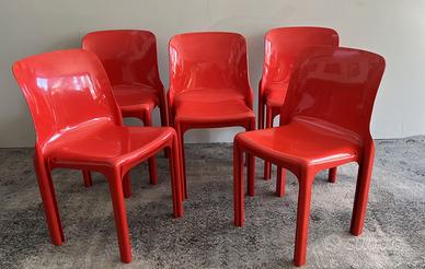 questo annuncio si riferisce alle 5 sedie rosso corallo modello SELENE, originali di Artemide disegnate da Vico Magistretti. Al momento a disposizione altre 5 sedie di colore bianco e anche il tavolo rotondo 1120x 120 h 71 Per info scrivetemi