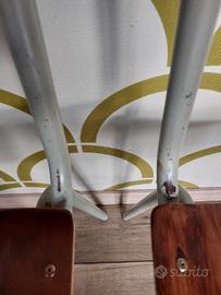 Quattro sedie di una vecchia scuola, con fusto in metallo grigio, sedie e schienale in legno color noce. La misura è da adulto, larghezza cm 35 altezza seduta cm 47 altezza totale cm 83. Hanno una bellissima patina vissuta e sono molto robuste, sono totalmente ripristinate pronte all'uso. Ho lasciato la loro patina originale, ma le ho trattate con vernice trasparente perché si mantengono. Questo tipo di sedia è molto usato nei pub del Regno Unito. Il prezzo è 30€ cadauna, se vedete l'annuncio la merce è disponibile.