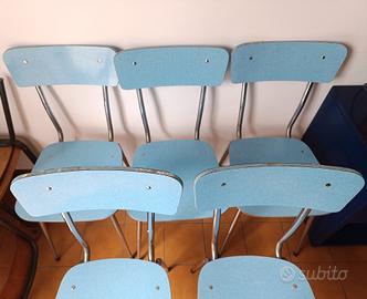 5 sedie anni 60 in formica celeste