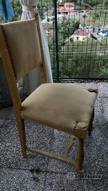 Regalo, 6 sedie vintage, tra cui 2 da sistemare sotto nella seduta, rivestimenti buoni.Ritiro a carico dell’interessato. Prezzo per le 6 sedie.