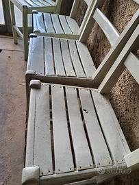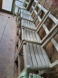 Splendide sedie anni 50 in faggio verniciate verde molto chiaro. Sono sane e integre, ma va fatto il trattamento antitarlo. Sono 5, le altre 2 che sono un po' diverse le REGALO