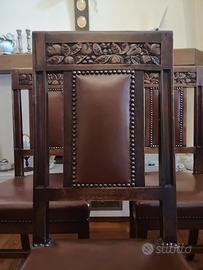 Set di 6 sedie vintage (anni 60/70 circa ) - seduta imbottita e schienale in legno intagliato con decori di frutta stile liberty Materiale : Rovere color noce Inclusi 6 coprisedia in tessuto bianco No perditempo / contattare solo se realmente interessati grazie . Ritiro a mano in valsusa e su torino Disponibile alla spedizione