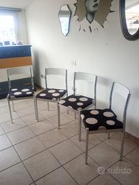 Set 4 sedie Anni 70 con struttura in metallo tubolare cromato e uno schienale bianco con seduta rivestita in neoprene a pois.