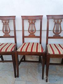 Numero 4 sedie vintage in legno intagliato, in ottimo stato sia la struttura che la tappezzeria (come nuova, solo un po' di polvere).