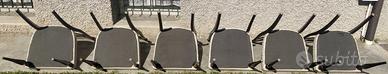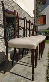 Sei Sedie Vintage di produzione Italiana anni '50 con seduta in sky. Ottime condizioni generali e molto solide, alcune sedute presentano segni di usura.