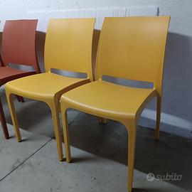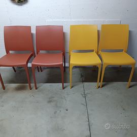 Vendo sedie in plastica completamente nuove due in colore bordeaux e due colore giallo ocra. Sono completamente nuove. NON SPEDISCO. Vendita anche separatamente