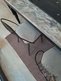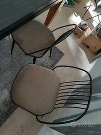 4 Sedie in filo di acciaio verniciato polveri colore piombo, finiutra lucida. La seduta non è sfoderabile ma imbottita in velluto colore tortora. Sono del marchio Colico italia e sono state esposte in negozio ma mai usate. Vendo per chiusura attività
