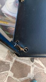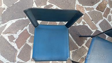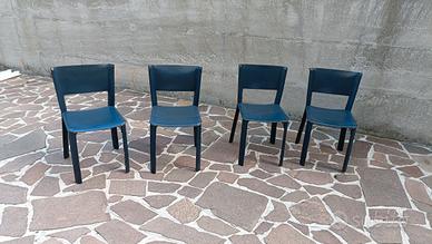 Set di quattro sedie design anni '70. Un po' rovinate sui bordi e qualche cucitura sfaldata. Colore blu scuro. Oggetti cult anni '70.