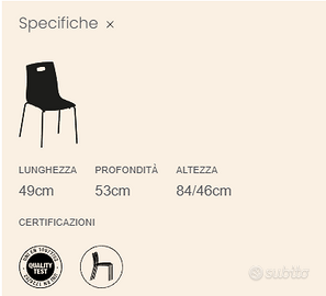 Sedia Olly di Ingenia con struttura in acciaio laccato, monoscocca in polipropilene. Sedia impilabile Dimensioni: cm L. 49 x P. 53 x H. 84 x H. seduta 46 vendo in blocco da 4