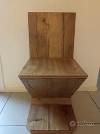 n. 4 sedie mod. Rietveld ZIG ZAG fatte artigianalmente con legno di recupero . Vendo 200 euro cadauna