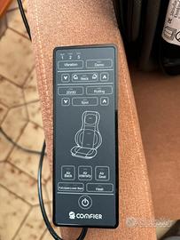 Vendo ottimo presidio per la salute e il miglioramento della schiena, si compone di un cuscino con seduta e schienale super massaggiante e rilassante,originale della Comfier, azienda specializzata in prodotti per la salute del corpo. Questo cuscino/schienale lo si può posizionare dove si vuole ( poltrona, divano, sedia, o anche steso a terra), e ha una moltitudine di tipi di massaggi tipo Shiatsu, che si possono selezionare tramite il comodo telecomando in dotazione. Massaggia e rilassa praticamente la schiena, i glutei, le spalle, le braccia e il collo.Comunque se si va in rete, si possono vedere tutte le caratteristiche di questo utilissimo e piacevole attrezzo. C’è anche la possibilità di provarlo, al mio domicilio. Quando si torna a casa la sera, dopo una giornata particolarmente impegnativa, stancante e stressante, 15 minuti con questo cuscino e si sciolgono tutte le tensioni e la fatica se ne va, lasciandovi una sensazione di riposo e benessere.E quando non lo si usa, si ripiega in due parti e occupa pochissimo spazio.Si preferisce il ritiro di persona, così lo si può anche provare, ma posso anche spedire tramite Subito.it.Prezzo trattabile.