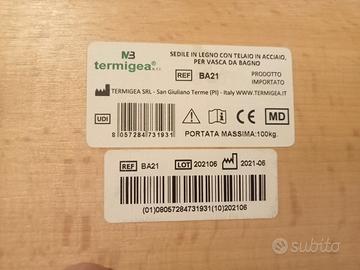 sedile in legno, telaio acciaio, per vasca da bagno Marca termigea, usato pochissimo, ottime condizioni